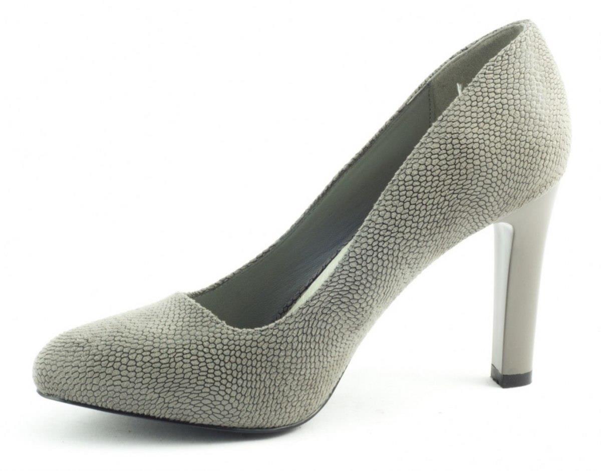 Bombas elegantes e universais em um tom de cinza que combina o corte clássico com o conforto de uso. Um modelo com nariz de amêndoa e um tipo de salto estável - ideal para o escritório e para passeios noturnos.