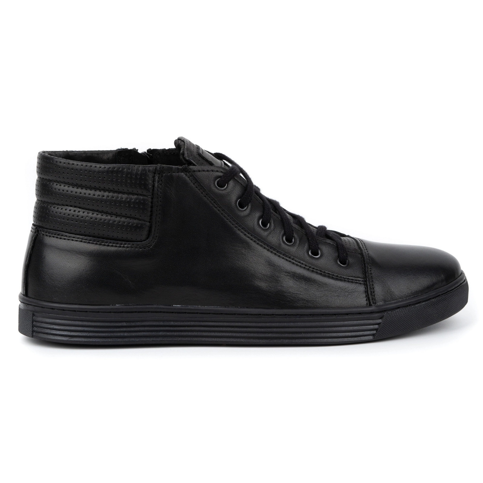 Estes sapatos estão disponíveis em uma cor preta suave e moderna, combinando perfeitamente com vários estilos. Um destaque interessante são as listras contrastantes que dão personalidade aos sapatos. A sola flexível em material de alta qualidade adapta-se perfeitamente ao formato do pé e garante alto conforto de uso.