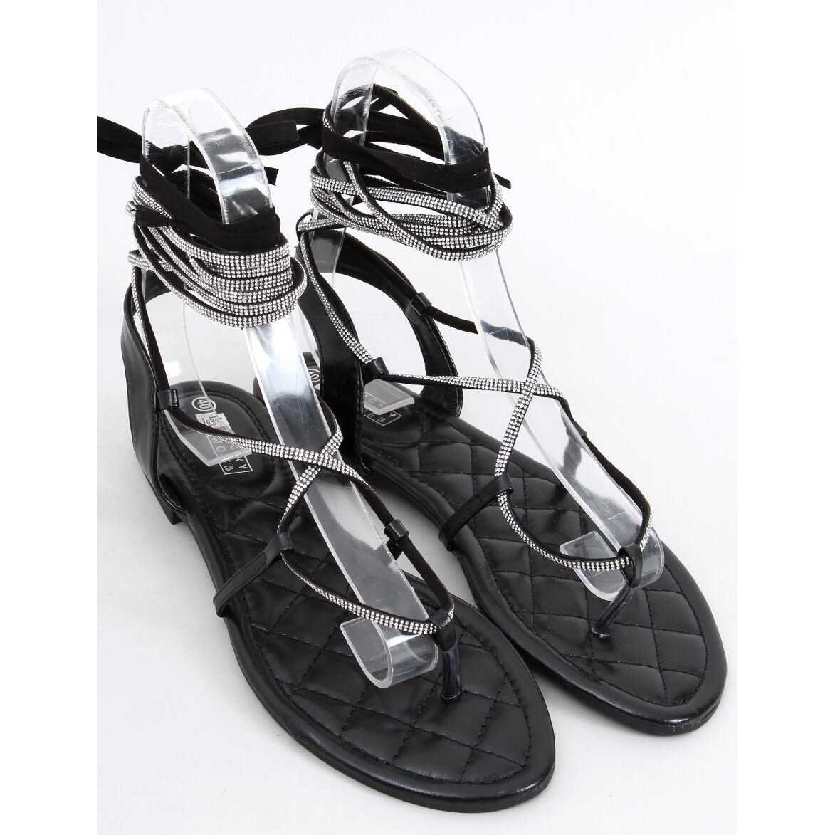 Descubra elegância e estilo único com as sandálias Abasi Black de amarrar no tornozelo! Estas sandálias femininas negras com sola acolchoada são a essência da modernidade e da classe. As tiras decoradas com zircões brilhantes, que envolvem subtilmente o tornozelo, conferem-lhes um carácter extraordinário e realçam o carácter feminino.
