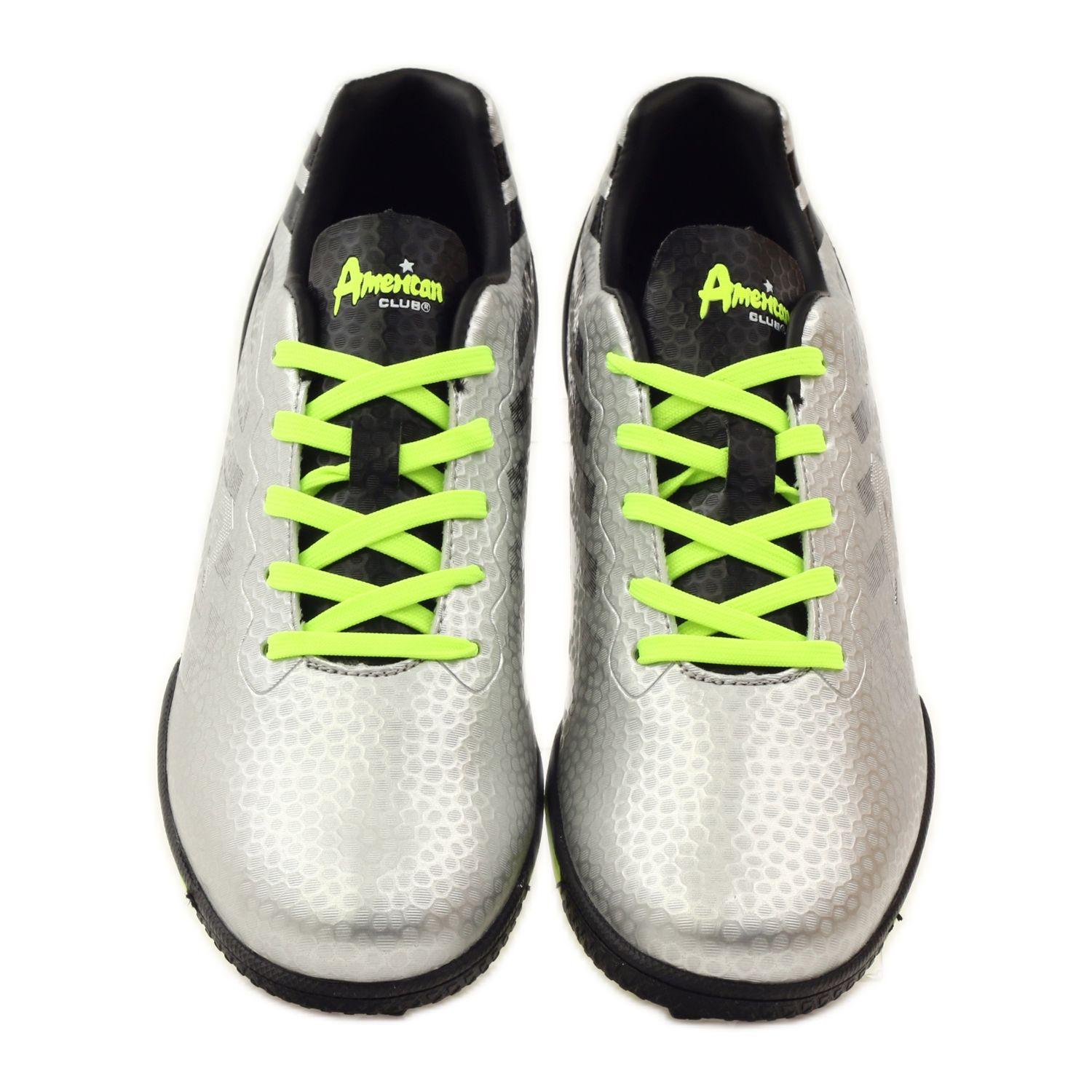 Os calçados esportivos masculinos American Club 170603, cinza e preto com acessórios prateados e verdes neon, são a solução perfeita para jovens jogadores de futebol. Fabricados com materiais sintéticos de alta qualidade, o design do calçado garante não só durabilidade, mas também conforto de uso.