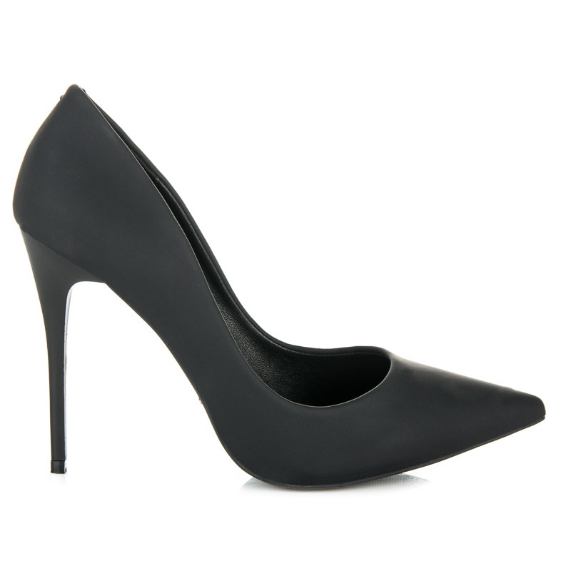 Feitos em couro ecológico de alta qualidade, têm um aspecto fenomenal e a sua cor preta intemporal torna-os fáceis de combinar com qualquer look. O salto de 10 cm de altura valoriza a figura e ao mesmo tempo garante conforto de uso, o que os torna adequados para longas horas de uso.