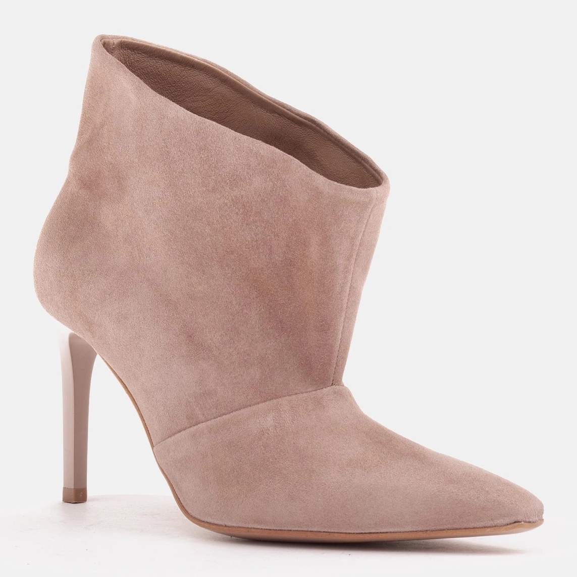 Marco Shoes - Botas elegantes em um salto alto com um dedo alongado e apontado. O clássico bege em uma edição de camurça faz o modelo se misturar perfeitamente com o vestido e as calças, criando estilizações de casual à noite.