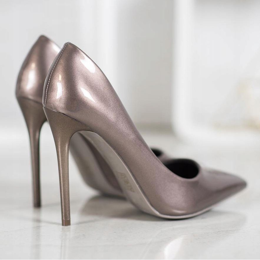 Small Swan concentra-se no design atemporal, o que faz com que esses sapatos de salto alto patenteados se encaixem perfeitamente em várias tendências da moda. A capacidade de colocá-los torna-os não apenas elegantes, mas também práticos. A cor cinza dos scarpins permite que sejam facilmente combinados com vários estilos, o que os torna um elemento universal em qualquer guarda-roupa.