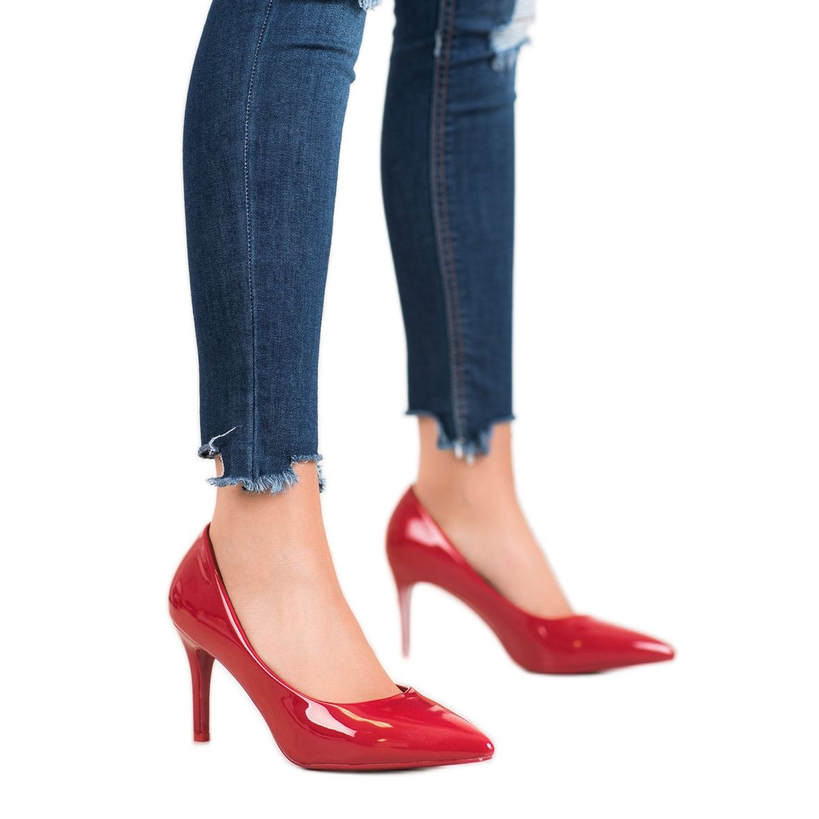 Descubra os clássicos com um toque de apelo sexual na forma de salto agulha vermelho do fabricante Small Swan. Estes sapatos exclusivos são a combinação perfeita de elegância e estilo moderno, que serão um complemento perfeito para o seu guarda-roupa para qualquer ocasião. A cor intensamente framboesa chama a atenção, e o couro ecológico envernizado da mais alta qualidade garante leveza e durabilidade deste modelo.