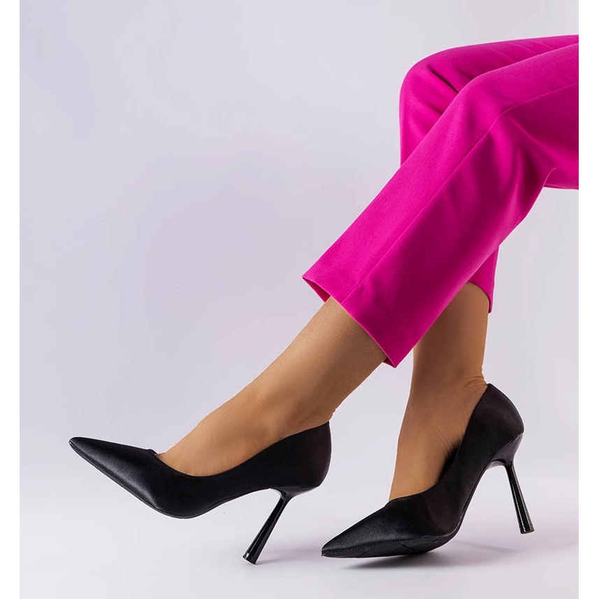 Saltos altos pretos com acabamento acetinado para Vincez - uma elegância atemporal com um personagem moderno. Modelo 23-20208