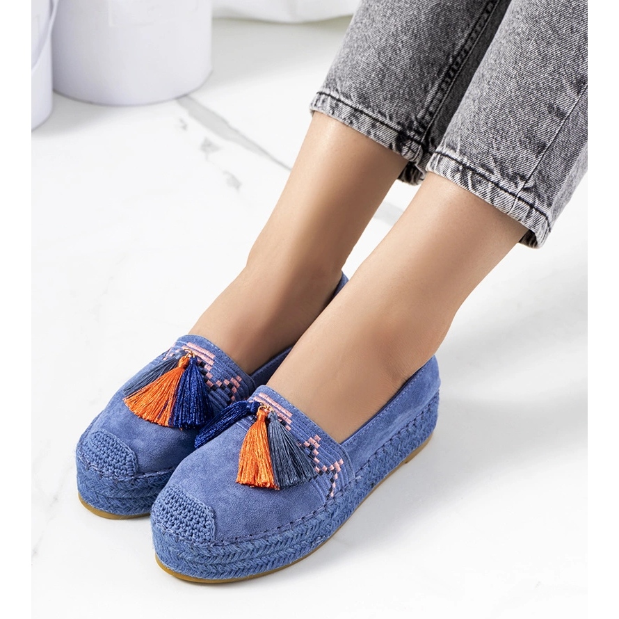 Detalhes: Alpargatas azuis na plataforma Pisquid azul