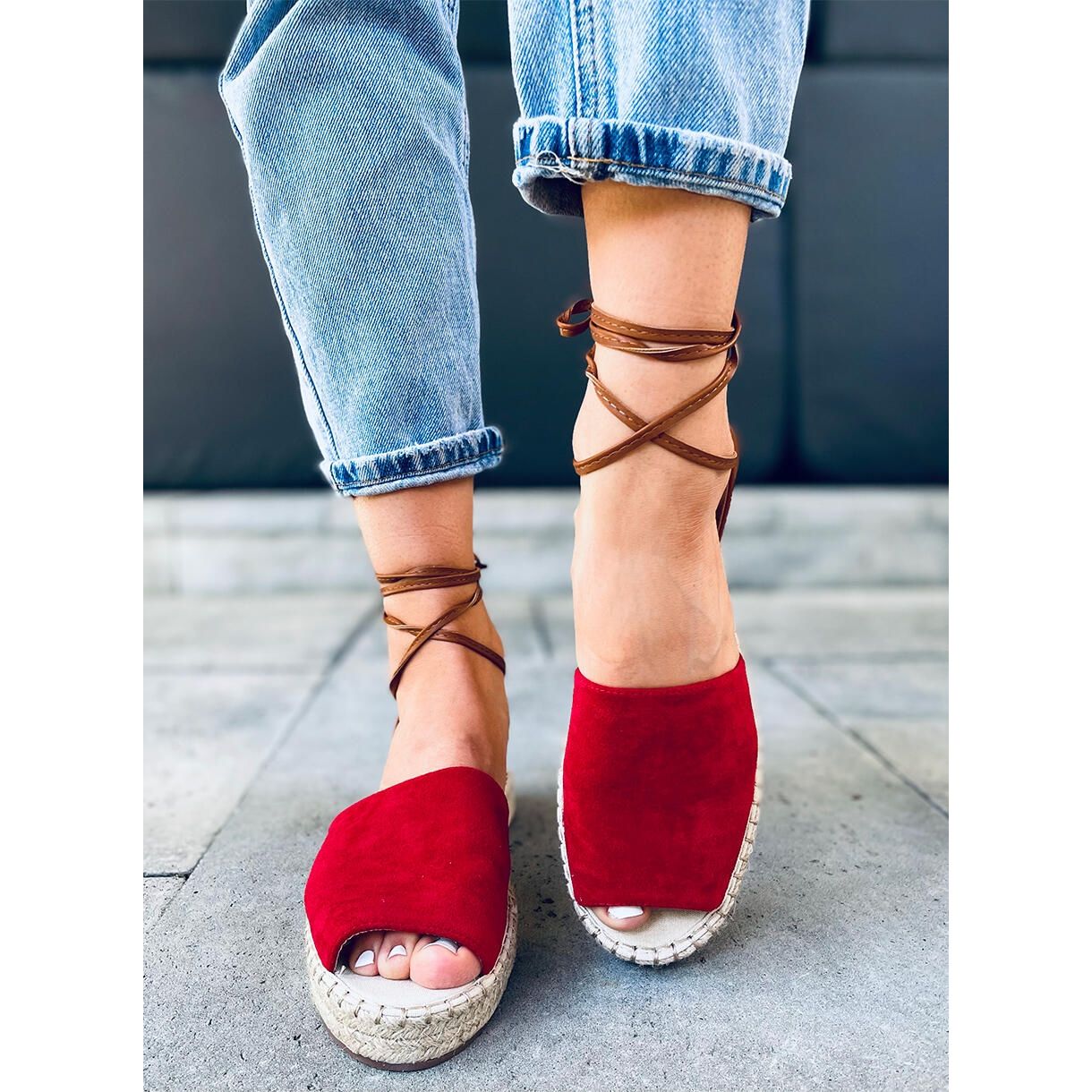 Descubra a elegância do verão com as alpercatas femininas Andrina Red! Estes elegantes sapatos com amarração no tornozelo são perfeitos para os dias quentes. Eles são caracterizados pelo corte aberto mais moderno, que expõe lindamente os pés. Confeccionados em camurça ecológica e couro ecológico, proporcionam não só conforto, mas também um visual fashion.