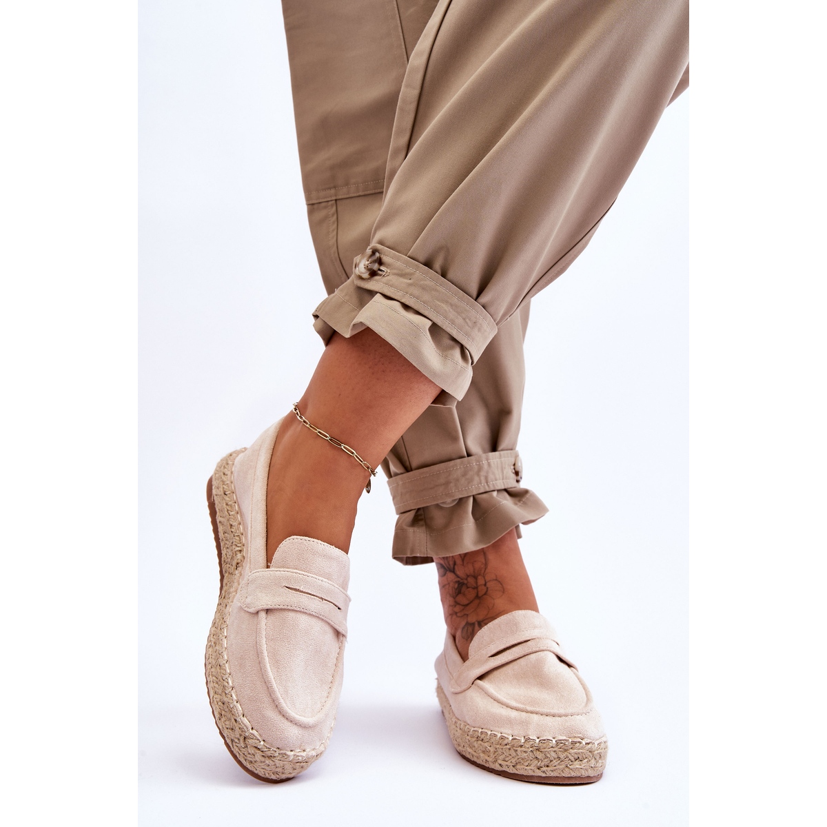 Detalhes: FI1 Alpargatas Femininas de Camurça Bege Claro Keyla
