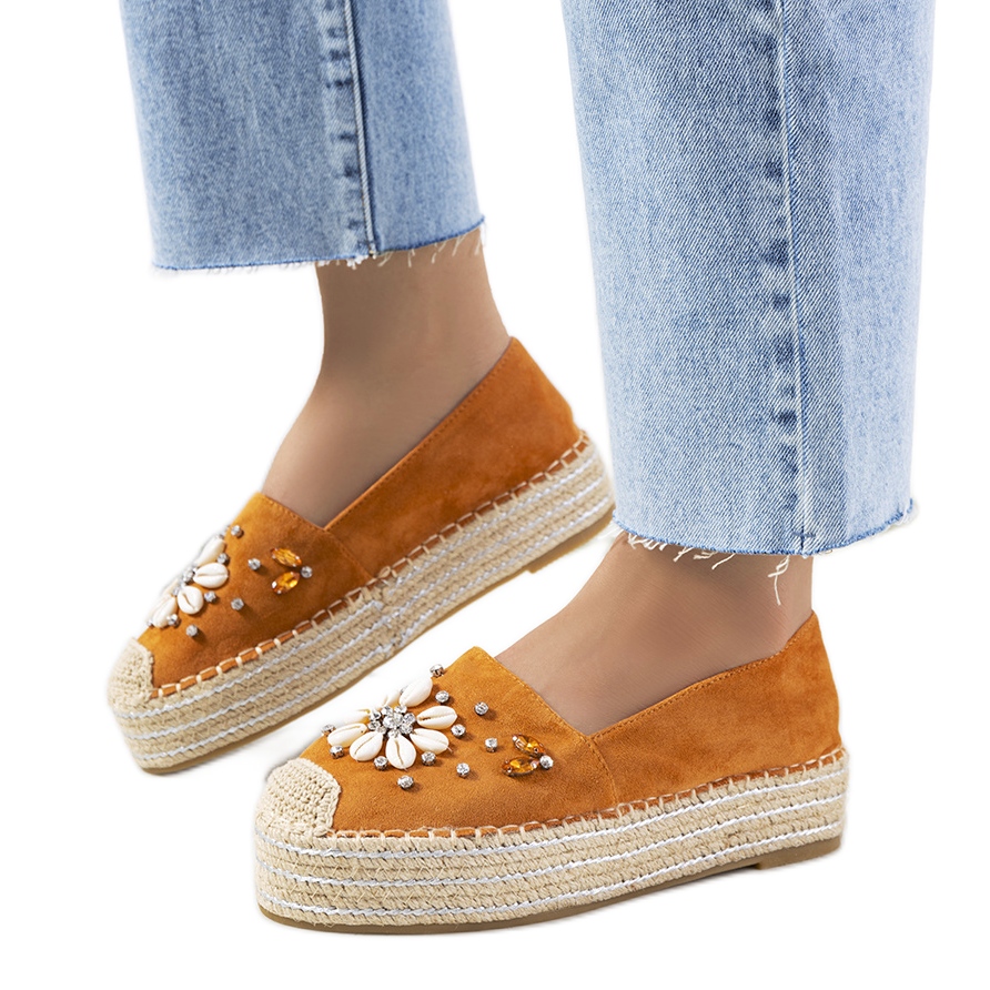 Detalhes: Alpargatas marrons na sola grossa da Mrs Nicki marrom amarelo