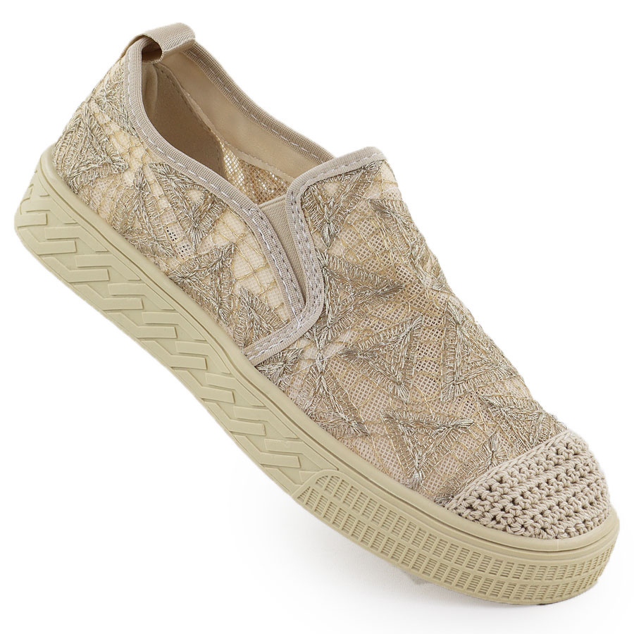 A cor bege e a renda delicada dão aos sapatos uma aparência elegante e elegante que se encaixa perfeitamente nas últimas tendências. O material externo do tecido não é apenas estético, mas também prático e fácil de manter. Um dedo redondo confortável e uma fixação de deslizamento tornam o puro prazer colocar e tirar alpargelas.