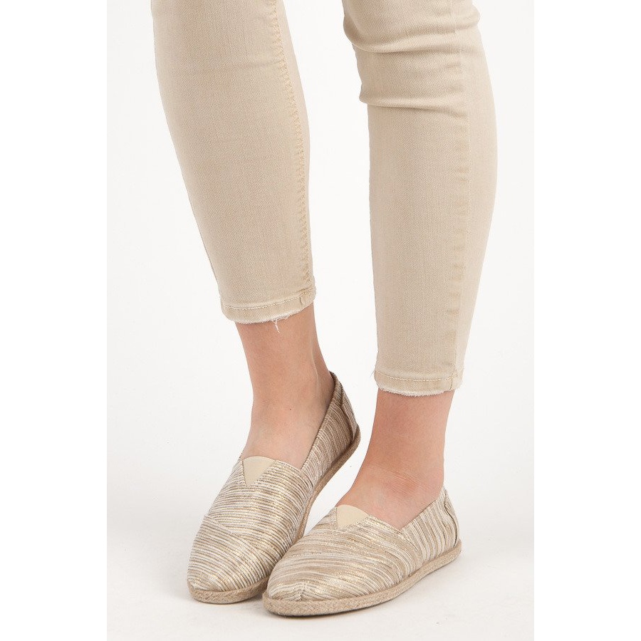 A parte superior das alpargatas é confeccionada em tecido com um atraente padrão listrado, que lhes confere leveza e frescor. A biqueira redonda torna-os confortáveis de usar e o fecho deslizante torna extremamente fácil calçar e tirar os sapatos.