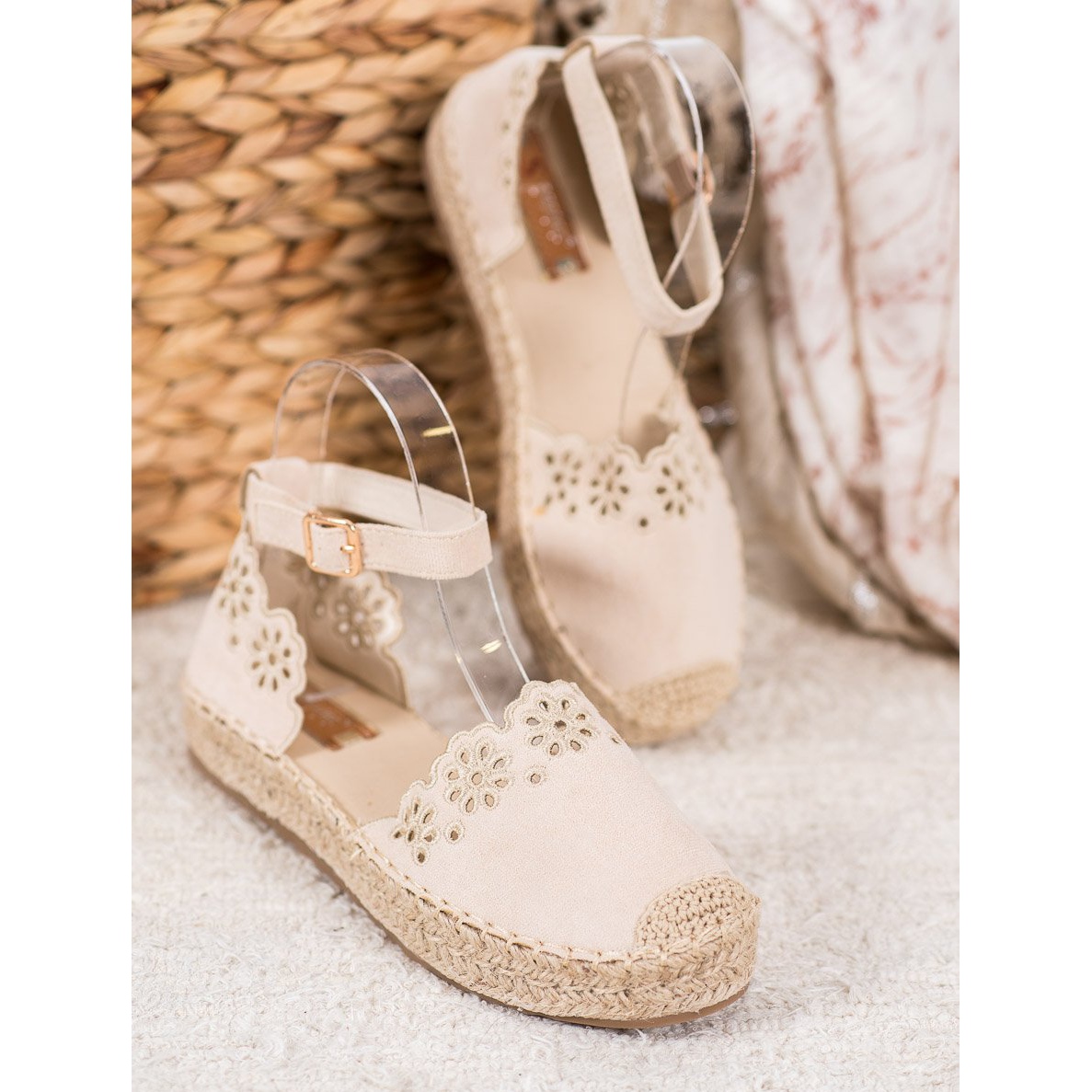 Graças à plataforma de 3 centímetros, estes calçados oferecem um excelente isolamento do solo, o que aumenta o conforto mesmo quando usados por longos períodos de tempo. O barbante entrelaçado enfatiza ainda mais seu estilo, conferindo ao conjunto um caráter único.