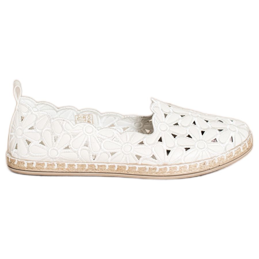 Descubra as alpargatas SHELOVET com padrão floral, que serão o complemento perfeito para o seu guarda-roupa primavera-verão. Estes estilosos sapatos brancos encantam com seu visual elegante e casual, o que os torna a escolha perfeita para o uso diário.