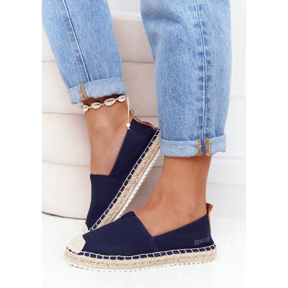 Descubra as alpercatas clássicas da marca polaca BIG STAR numa cor azul marinho única. O modelo HH274500 é a escolha perfeita para mulheres que valorizam conforto e estilo. Estes sapatos distinguem-se pela sola trançada, o que lhes confere um encanto extraordinário. Confeccionados em tecido de alta qualidade, garantem maciez e conforto de uso graças ao inserto de material.
