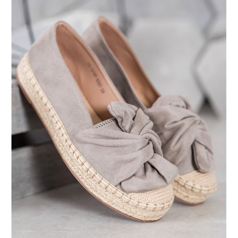 A plataforma de 3 cm de altura acrescenta um aumento subtil, ao mesmo tempo que realça a elegância da silhueta. Por sua vez, a biqueira redonda e o laço decorativo são detalhes que conferem às alpargatas um carácter único.