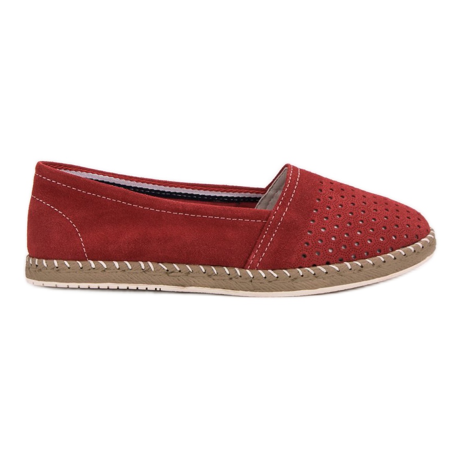 Da coleção KeeShoes, estas alpercatas distinguem-se pela sua simplicidade e design clássico - a cor vermelha dominante e o padrão vazado acrescentam-lhes charme, e a falta de decorações adicionais faz com que combinem com muitos estilos. Uma vantagem adicional é a palmilha em couro que garante conforto aos pés durante todo o dia.