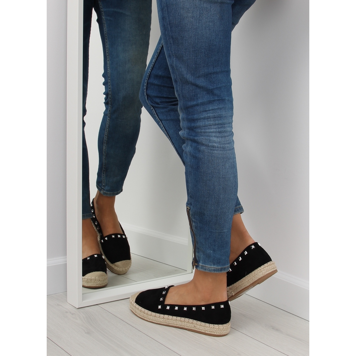 As alpercatas pretas femininas 99-17 pretas são uma excelente opção para mulheres que valorizam estilo e conforto. Estas alpercatas originais distinguem-se pelo seu design moderno, enriquecido com atraentes tachas que lhes conferem carácter e expressividade. O couro camurça ecológico com que são feitos os sapatos garante não só um visual elegante, mas também conforto de uso.