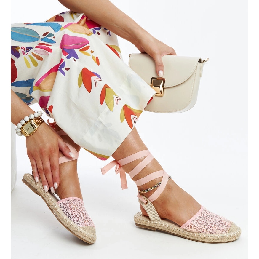 Graças à combinação universal de cor rosa com detalhes em bege, os alpargatas se encaixam em muitas estilizações de verão, desde caminhadas casuais pela cidade, através de datas românticas, até relaxar na praia. O material de borracha da sola fornece boa adesão e conforto, e a palmilha de tecido faz com que você os use o dia todo.