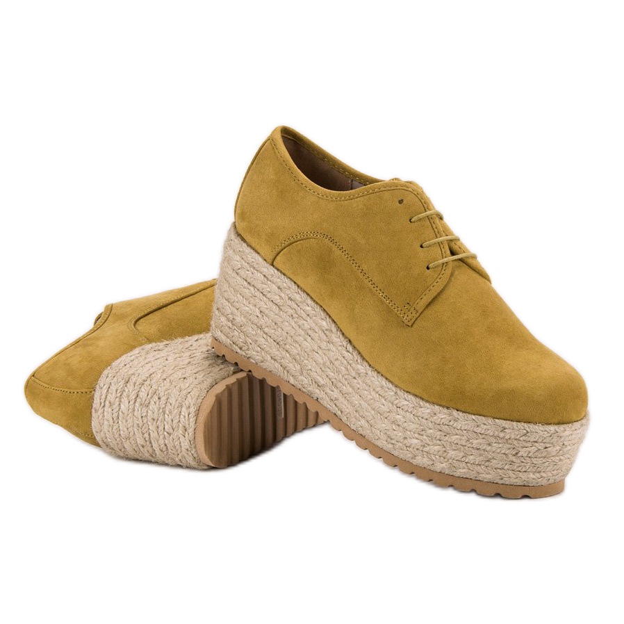 Detalhes: Corina Alpercatas elegantes com cadarços amarelo