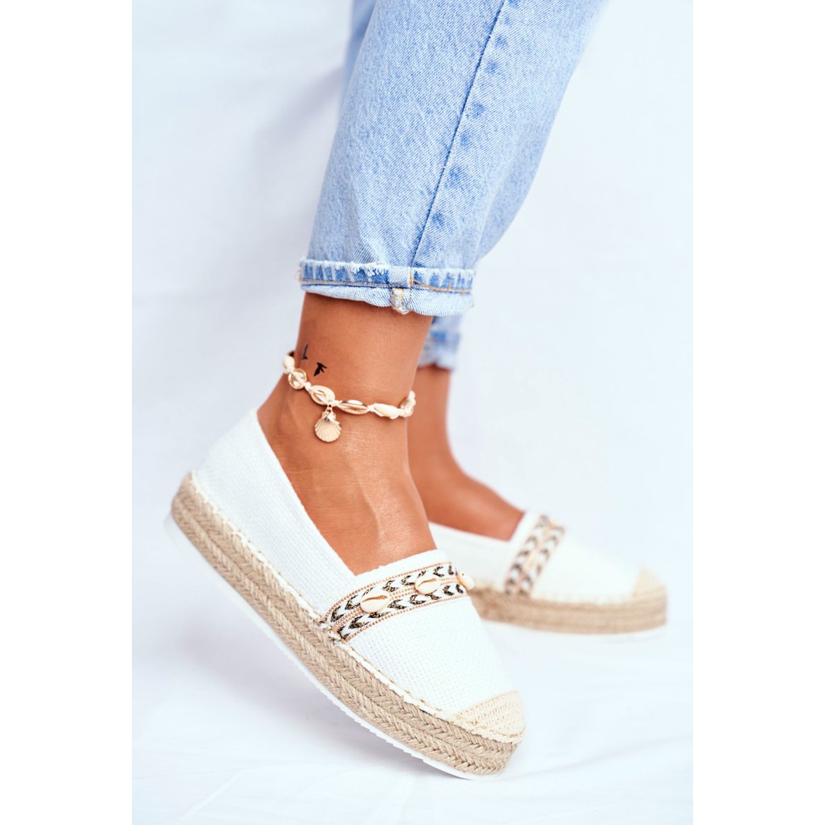 Detalhes: HAN Alpercatas femininas com plataforma de linho branco Mindi