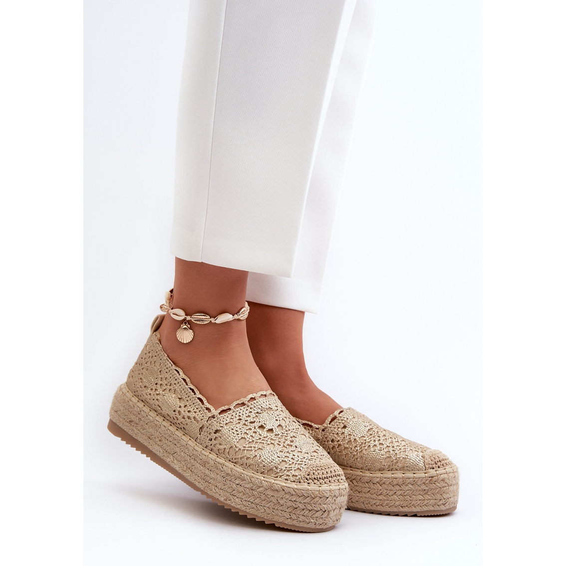Inna marka Alpercatas femininas de renda na plataforma Elarose dourada dourado