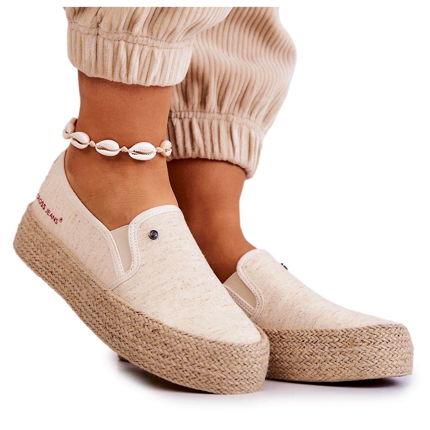 Cross Jeans Alpercatas femininas na plataforma Cross Jeans JJ2R4014C bege