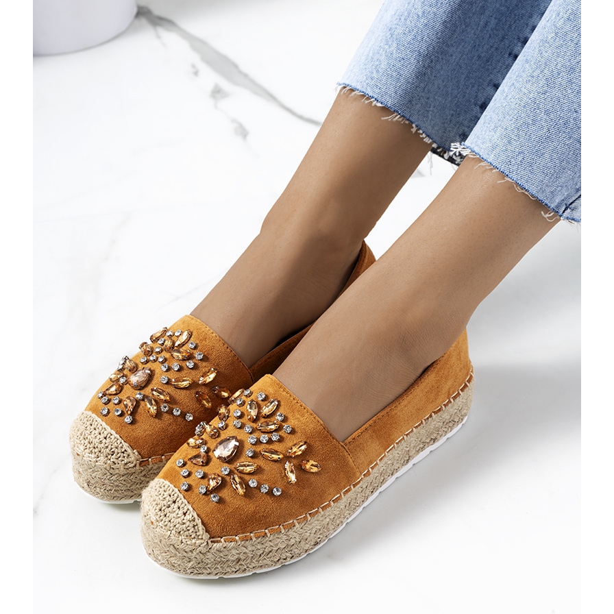 Confeccionadas em couro camurça ecológico, as alpercatas oferecem não só um visual estiloso, mas também durabilidade. Decorações adicionais em forma de zircões chamam a atenção e conferem ao conjunto um caráter único. A cor Camel combinada com a sola branca combina perfeitamente com os estilos de verão, tornando estes sapatos perfeitos para qualquer ocasião.