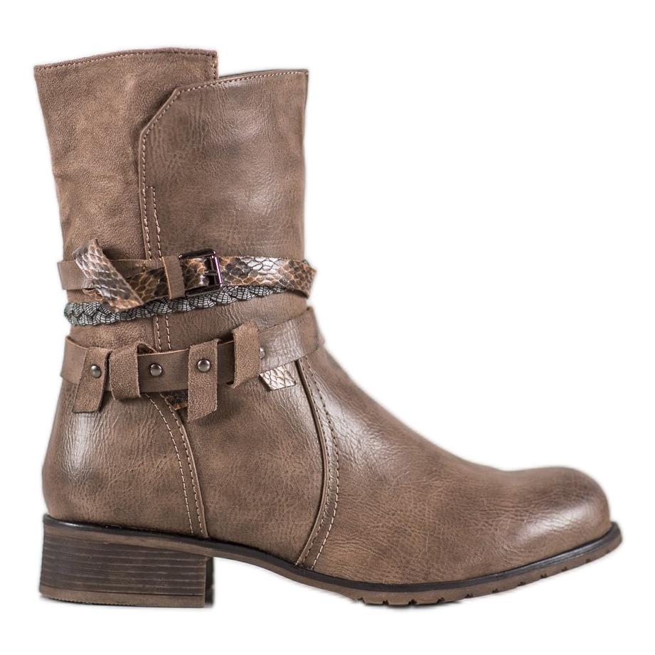 Descubra um modelo único de trabalhadores marrons altos da marca Super Mode, que combinam design moderno e funcionalidade. Estes calçados femininos extremamente estilosos em um tom quente de marrom, confeccionados em couro ecológico de alta qualidade, garantem não só conforto de uso, mas também durabilidade por muito tempo.