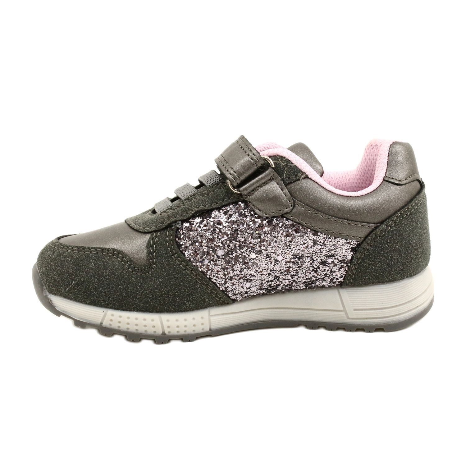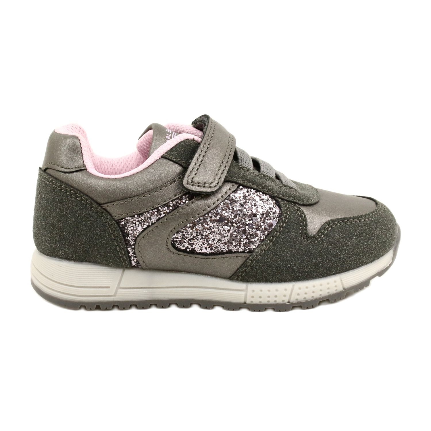 American Club ES40 Sapatos esportivos infantis - calçados elegantes, confortáveis e duráveis para meninas. Uma parte superior cinza-prata com elementos de couro ecológico combina a elegância universal com um sotaque moderno e feminino na forma de um interior delicado e rosa. O design interessante certamente atrairá um pequeno cliente.
