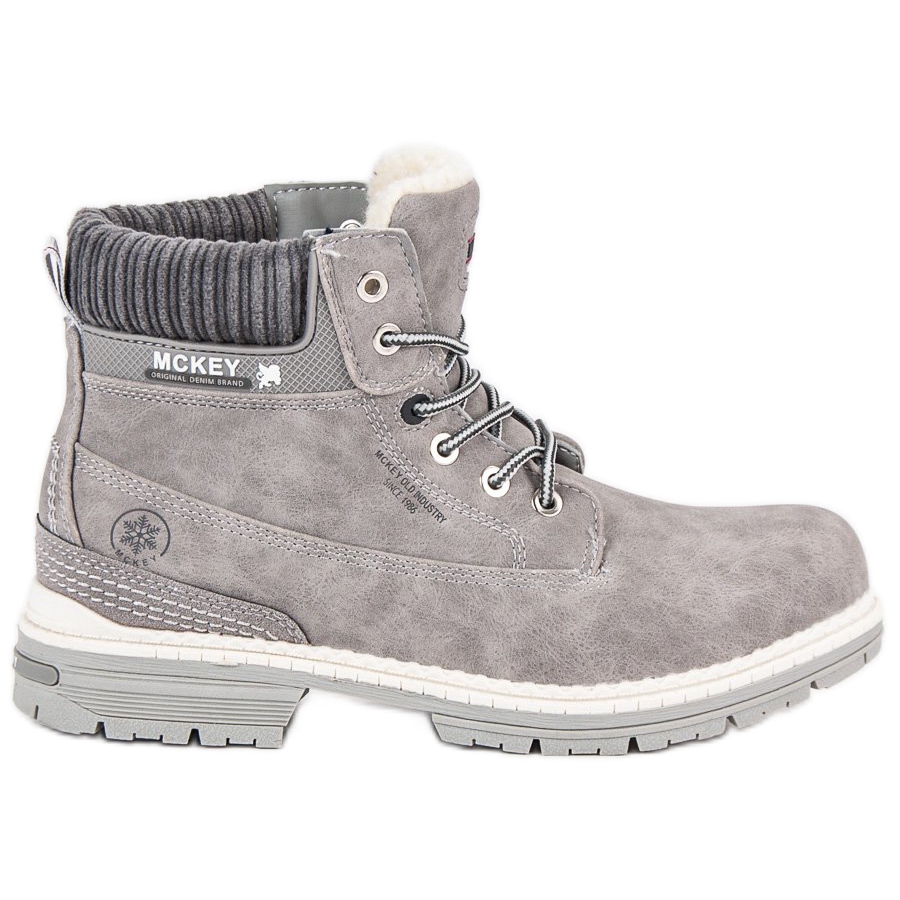 Os Trappers femininos McKey Grey são uma combinação de funcionalidade e design moderno que certamente enfatizarão seu estilo. Escolha estas botas para a próxima estação e desfrute de conforto e um look fashion todos os dias.