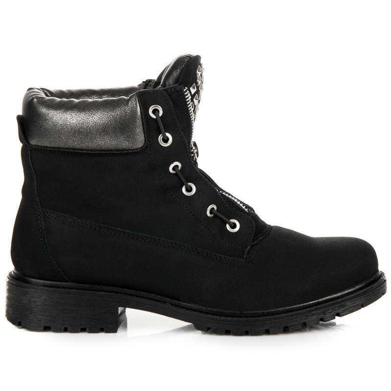 Os tênis pretos têm cabedal de 24 cm de largura e 14 cm de altura, o que garante ótimo ajuste ao pé. A altura do salto de apenas 3 cm torna-o confortável para usar por longas horas. Confeccionados em materiais sintéticos, com isolamento para maior conforto, estes botins são perfeitos para o outono/inverno.