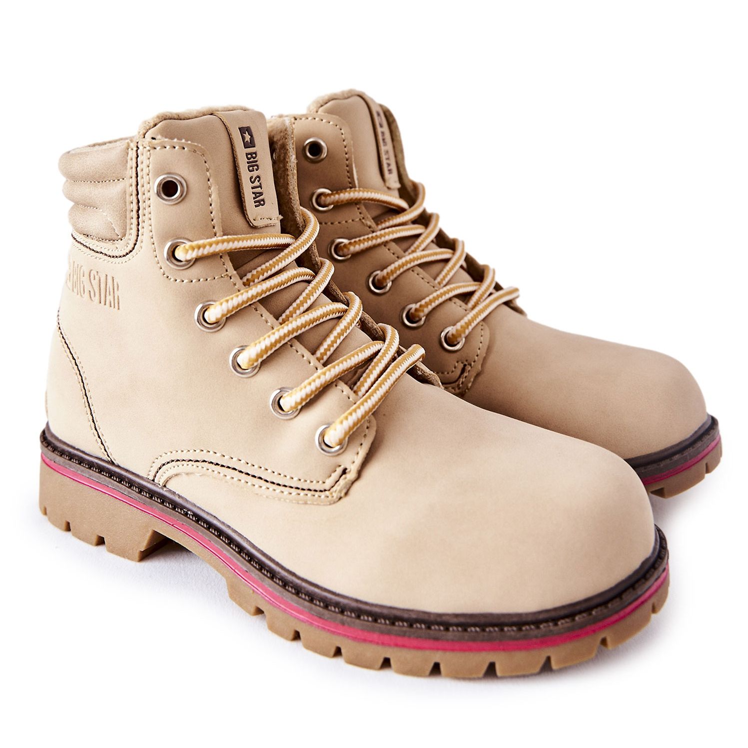 Botas de caminhada clássicas e elegantes da Big Star Children - feitas inteiramente de couro ecológico, perfeito para dias mais frios, graças ao isolamento de um casaco macio de pele de ovelha. Os sapatos estão atados e uma trava adicional ao lado facilita a instalação e a remoção rapidamente. A cor bege e universal combina bem com muitos estilos - do dia a dia a mais elegante.
