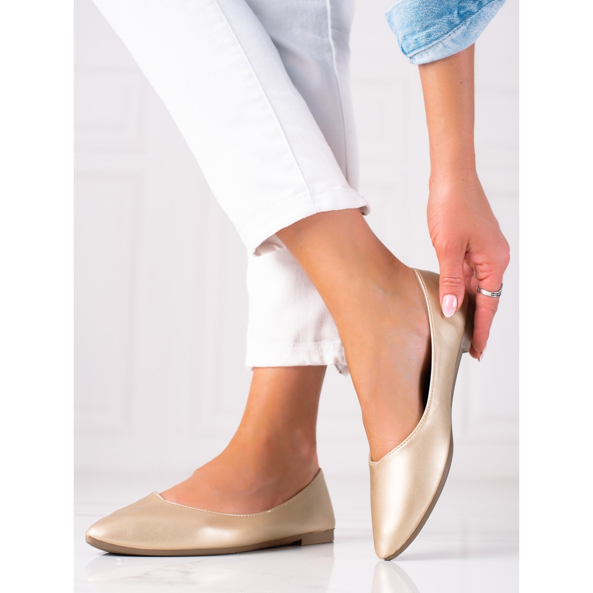 Confeccionadas em couro ecológico de alta qualidade, as sapatilhas Potocki se diferenciam pela cor dourada metálica, que atrai o olhar e dá brilho a qualquer estilo. Um salto macio e embutido garante estabilidade e conforto de uso, e os dedos em formato de amêndoa adicionam um charme sutil. A palmilha em couro natural garante conforto mesmo no uso o dia todo.