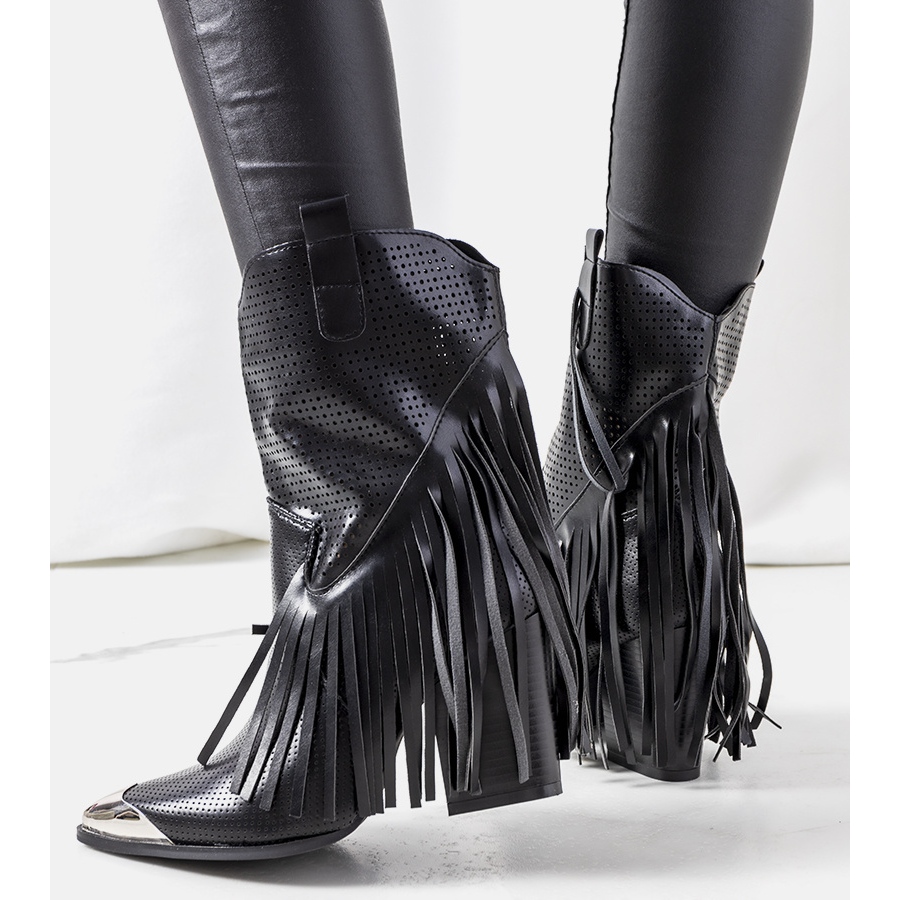 Feitos pensando no conforto, esses modelos são confeccionados em couro ecológico de alta qualidade, que além de ecologicamente correto, garante conforto mesmo quando usado por muito tempo. Seu corte estilo botas de cowboy americanas proporcionará um visual original - as franjas adicionam movimento e a biqueira pontiaguda de metal acentua sofisticadamente essa estética extremamente popular.