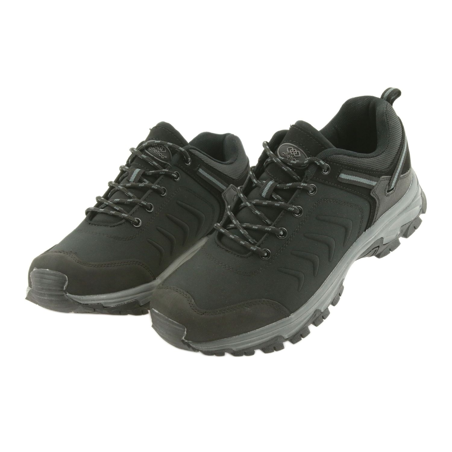 Apresentamos o calçado de trekking Atlético 706 na elegante cor preta, que será o companheiro perfeito para todos os entusiastas de atividades ao ar livre. Fabricados em material Softshell moderno, esses calçados esportivos combinam funcionalidade e estética. Graças às camadas de material cuidadosamente selecionadas, oferecem excelente proteção contra o vento frio e evitam eficazmente a entrada de umidade, garantindo ao mesmo tempo uma ventilação adequada do pé.