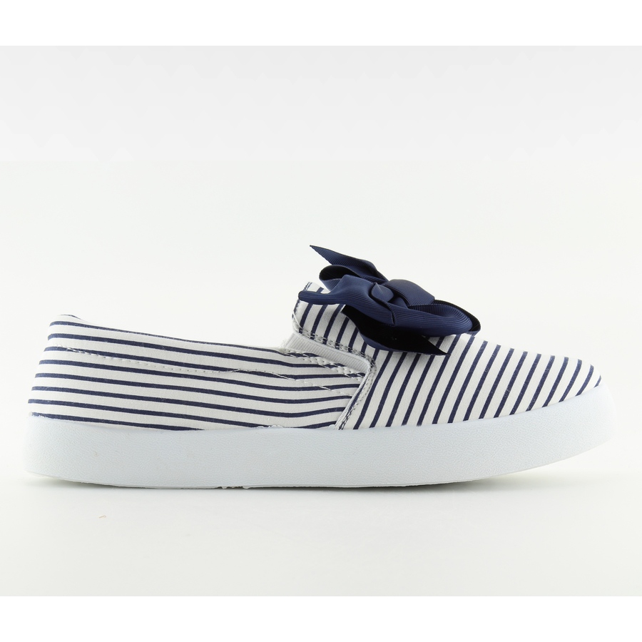 Sailor slipons B860 branco/azul marinho - tênis leve de verão em estilo marinheiro, perfeito para passeios de férias e estilo do dia a dia. Confeccionadas inteiramente em tecido, encantam com uma combinação clássica de branco e azul marinho e um laço decorativo que confere um caráter feminino. A sola branca e desportiva (plataforma/altura do salto 2,0 cm) realça o estilo casual e garante conforto no dia a dia.