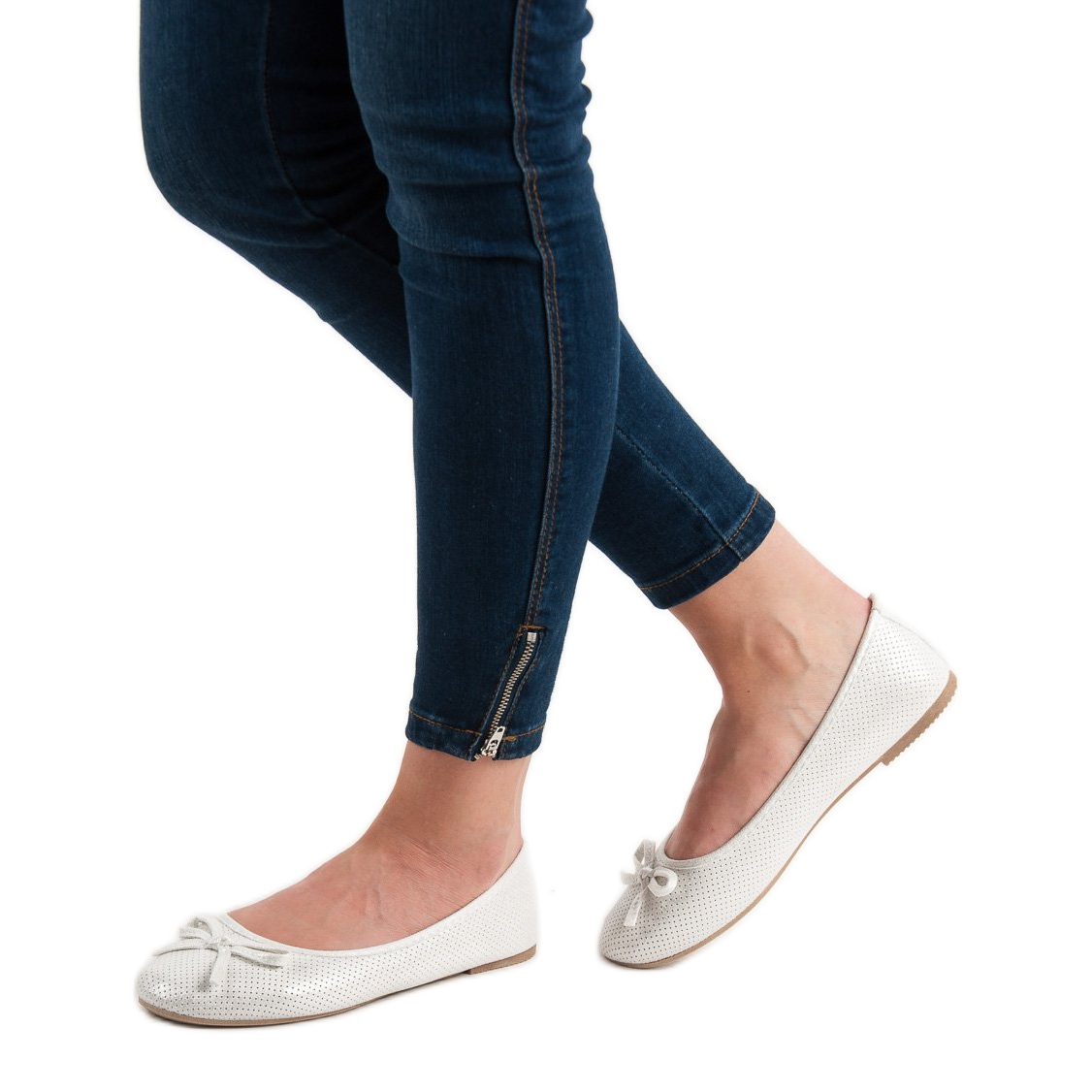Estes sapatos elegantes, disponíveis na clássica cor branca, vão agradar a todas as mulheres elegantes. Perfeitos para o uso diário, principalmente na primavera e no verão, funcionam bem em estilos casuais. As sapatilhas brancas com laço são um item obrigatório no guarda-roupa de toda mulher. Dê um passo em direção ao estilo e conforto com este produto exclusivo da Evento!