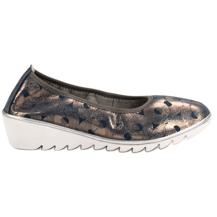 Estas sapatilhas apresentam um fecho deslizante, o que as torna fáceis de colocar e tirar. Graças ao salto macio integrado, cada passo nestes sapatos é puro prazer. A altura da cunha é de 4 cm, o que garante conforto de uso ao mesmo tempo que alonga opticamente as pernas.