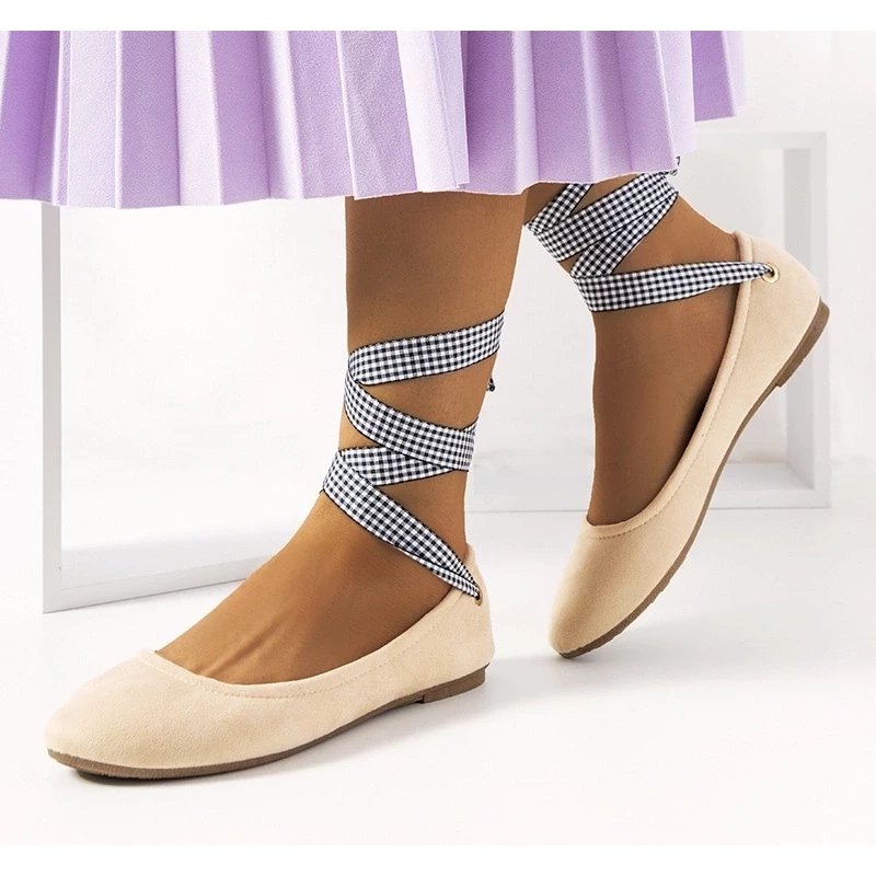 Detalhes: D/GMR Bailarinas bege com laço Acro