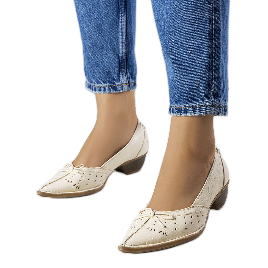 As sapatilhas Glazko são uma escolha única para mulheres que desejam combinar conforto com elegância no estilo de verão. Confeccionadas em couro ecológico, essas sapatilhas bege vazadas impressionam pelo cuidado em cada detalhe. Sua altura baixa, com salto de 3,5 cm, enfatiza suavemente as pernas, conferindo-lhes leveza e charme feminino.
