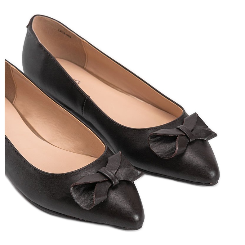 Detalhes: Bailarinas castanhas com um arco Lisa marrom
