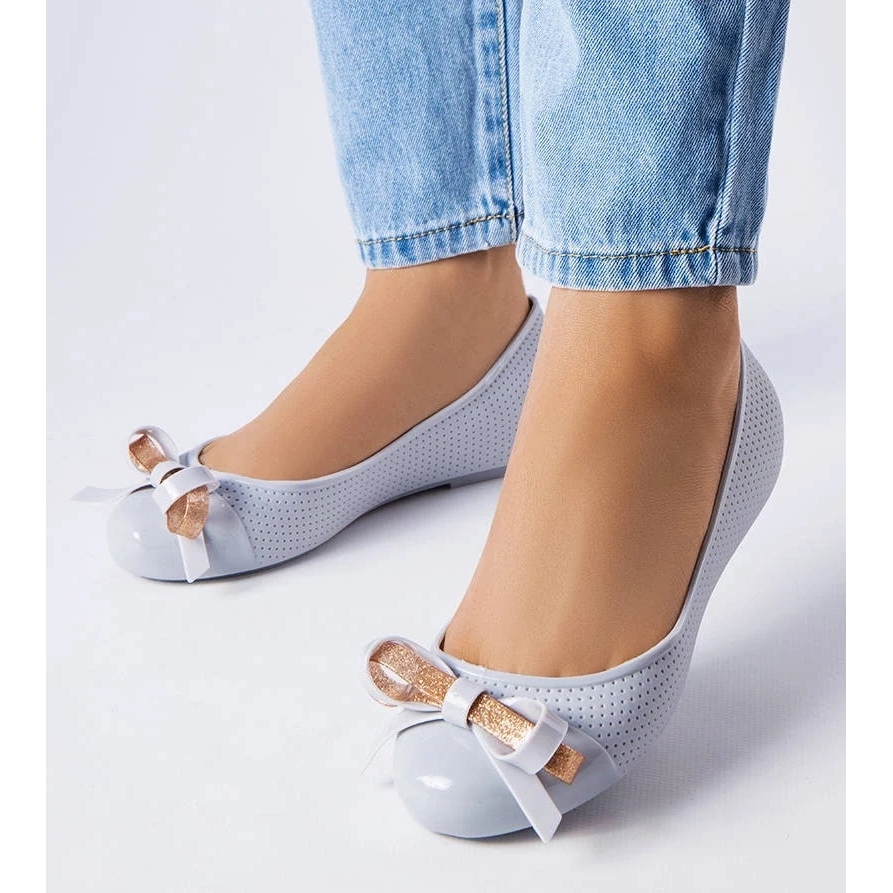 Detalhes: D/GMR Bailarinas cinza decoradas com um laço Harlingen