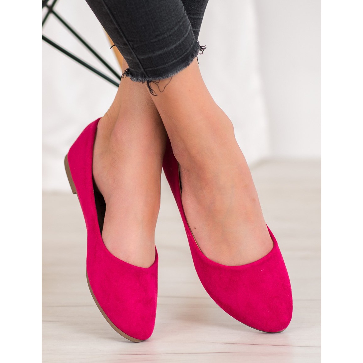 Detalhes: Bailarinas clássicas de camurça VINCEZA rosa