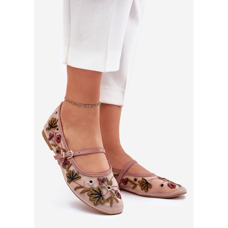 Descubra o charme das bailarinas com bordados e uma faixa em um tom rosa, que combina perfeitamente a elegância com o conforto diário. Seu bordado floral acrescenta um personagem único, fazendo com que cada estilização ganhe um sotaque elegante.