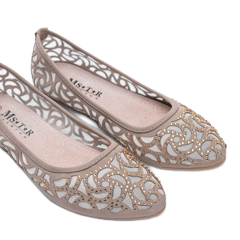 Descubra elegância e conforto com sapatilhas bege vazadas. Vamos! Este é um modelo único que combina estilo feminino e conforto, perfeito tanto para trabalho como para passeios noturnos. O cabedal em malha vazada, decorado com um lindo padrão floral confeccionado em couro ecológico camurça cáqui, faz com que essas sapatilhas se destaquem das demais.