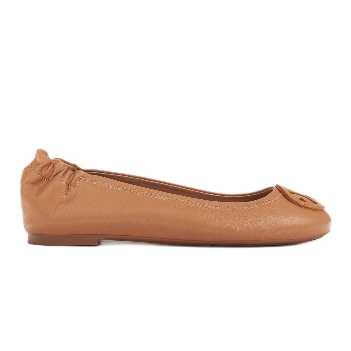 Detalhes: Marco Shoes Bailarinas com decoração em couro liso marrom