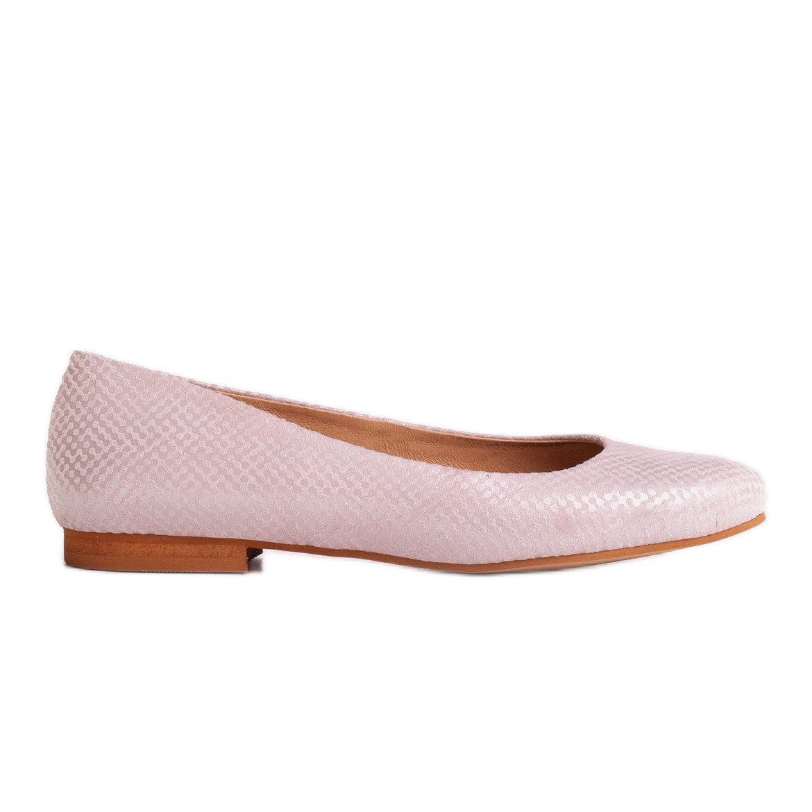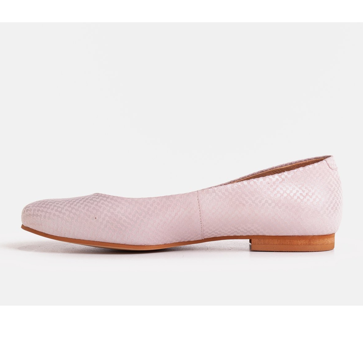 O conjunto fica com um aspecto de extremo bom gosto graças à camurça natural de alta qualidade utilizada no acabamento da parte externa do calçado. A delicada cor rosa combinada com um tom prateado confere às bailarinas um caráter moderno e também pode torná-las um destaque atraente em qualquer estilo.
