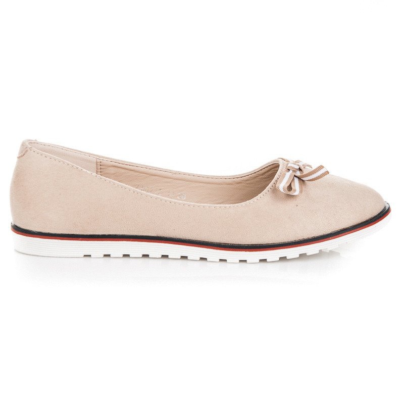 Cada modelo é decorado com um laço sutil que enfatiza seu charme feminino. A cor bege faz com que as sapatilhas combinem com diversos looks, desde os do dia a dia até os mais elegantes. A altura do salto de 3 cm garante estabilidade adequada ao mesmo tempo que garante conforto de uso durante todo o dia.