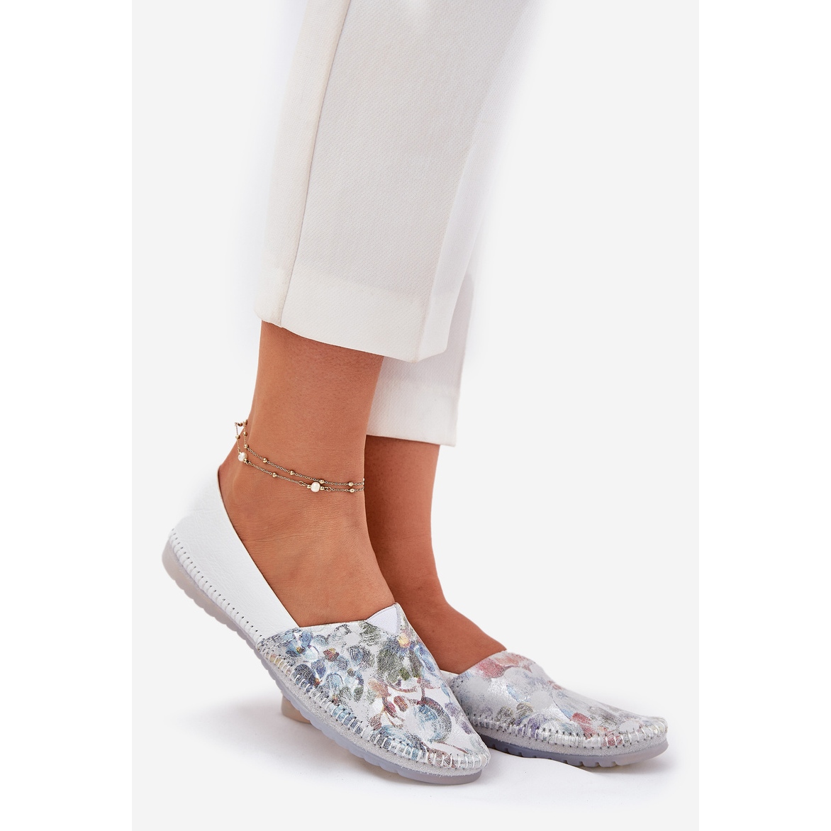 Maciejka Bailarinas de couro com um padrão Maciejka T1930-38 White branco
