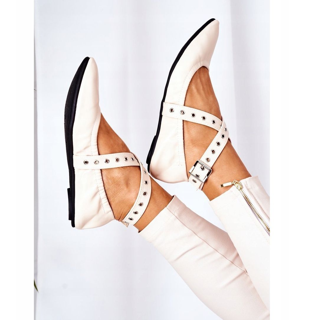 Detalhes: Bailarinas de couro dobrável Lu Boo Beige bege